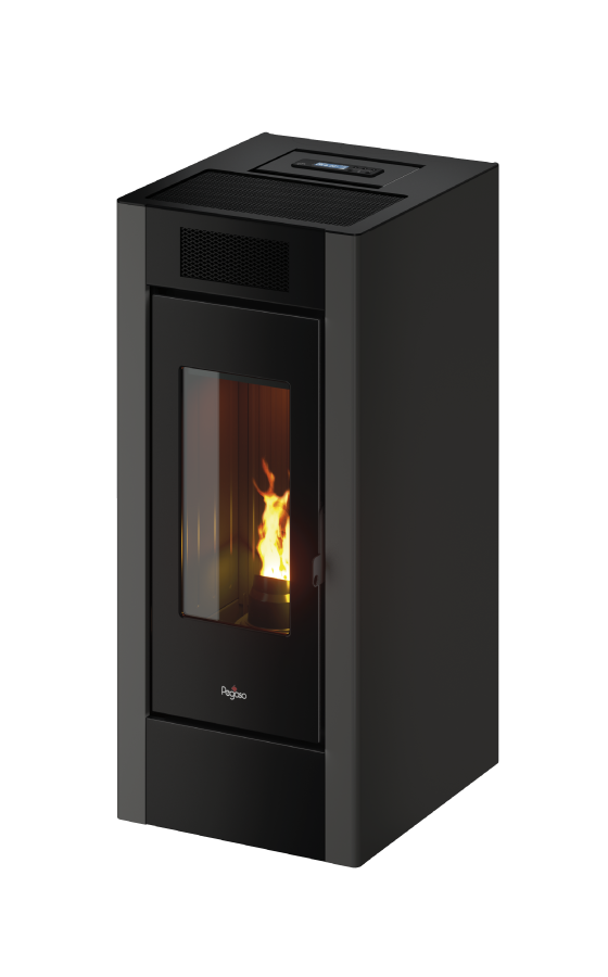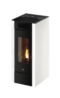 Stufa a pellet ad aria da 10,5 kW canalizzabile, con possibilità di riscaldare l’ambiente in cui è installata ed altri adiacenti. Rivestita in acciaio verniciato è dotata di un capiente serbatoio pellet e griglia frontale.